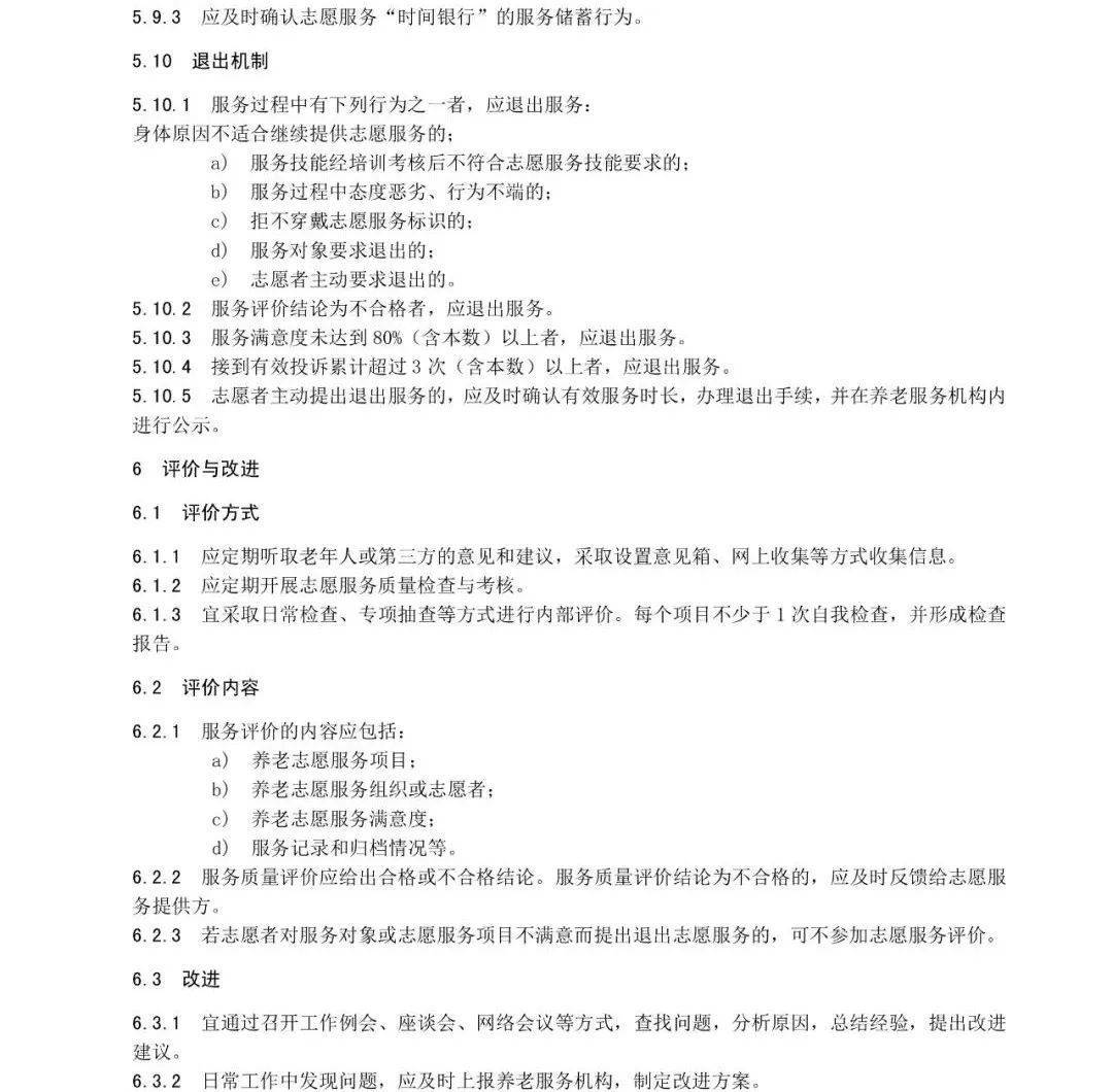 征求意见稿提出,为老年人提供公益养老服务过程中,志愿者不得单独决定终止服务。此外,即使是志愿服务也将有“退出机制”,服务过程中态度恶劣、行为不端的;服务满意度未达到 80%及以上者;接到有效投诉累计超过3次的养老服务志愿者均将退出服务。