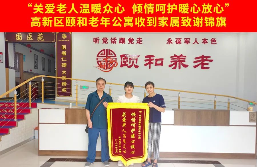 高新区颐和老年公寓贴心关怀,家属感恩送锦旗致谢