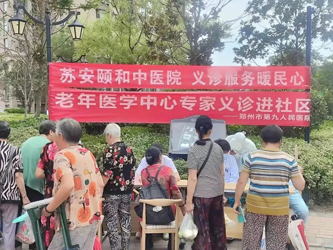 7月24日上午,郑州高新苏安颐和中医院携手郑州市第九人民医院郑州市老年医院专家,来到五龙新城香馨园小区开展“服务百姓健康行动——关注健康,关爱老人,苏安颐和伴你行 ”主题义诊活动