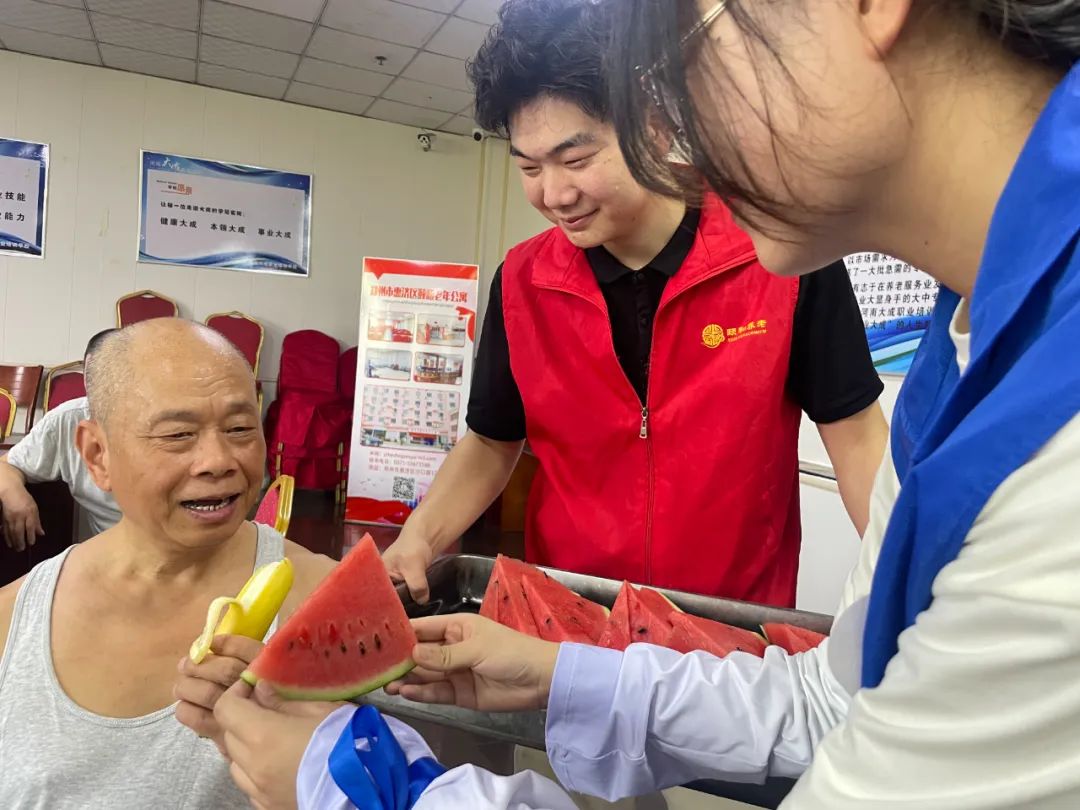 2023年8月5号上午,高新万达积极响应社会关怀行动,在惠济区颐和老年公寓开展了一次温馨的慰问活动。此次活动旨在为颐和长者带去关爱和温暖,让颐和长者感受到社会大家庭的温情。 高新万达志愿者们精心准备了各种新鲜水果和美味零食,这些可口的食物不仅满足了颐和长者们的味蕾,也给颐和长者带来了快乐和满足感。志愿者们逐一送上水果和零食,与颐和长者们亲切交流,让他们感受到关怀和关注。