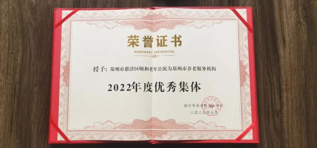 8月11日,惠济区颐和老年公寓荣获郑州市养老服务机构2022年度优秀集体荣誉证书。这是对惠济区颐和老年公寓长期以来出色工作的肯定和奖励。颐和老年公寓始终致力于为老人提供安全、舒适、温馨的居住环境,并且不断改进服务质量,满足老人们的各种需求。