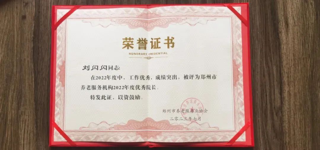由郑州市养老服务协会主办,“2022年度优秀集体及个人”评选活动颁奖典礼,8月11日成功举行。郑州高新区颐和老年公寓凭借在养老服务方面的强大影响力及客户高满意度,一举荣获“2022年度优秀集体”荣誉称号。杨青萍同志荣获“2022年度优秀院长”荣誉称号。