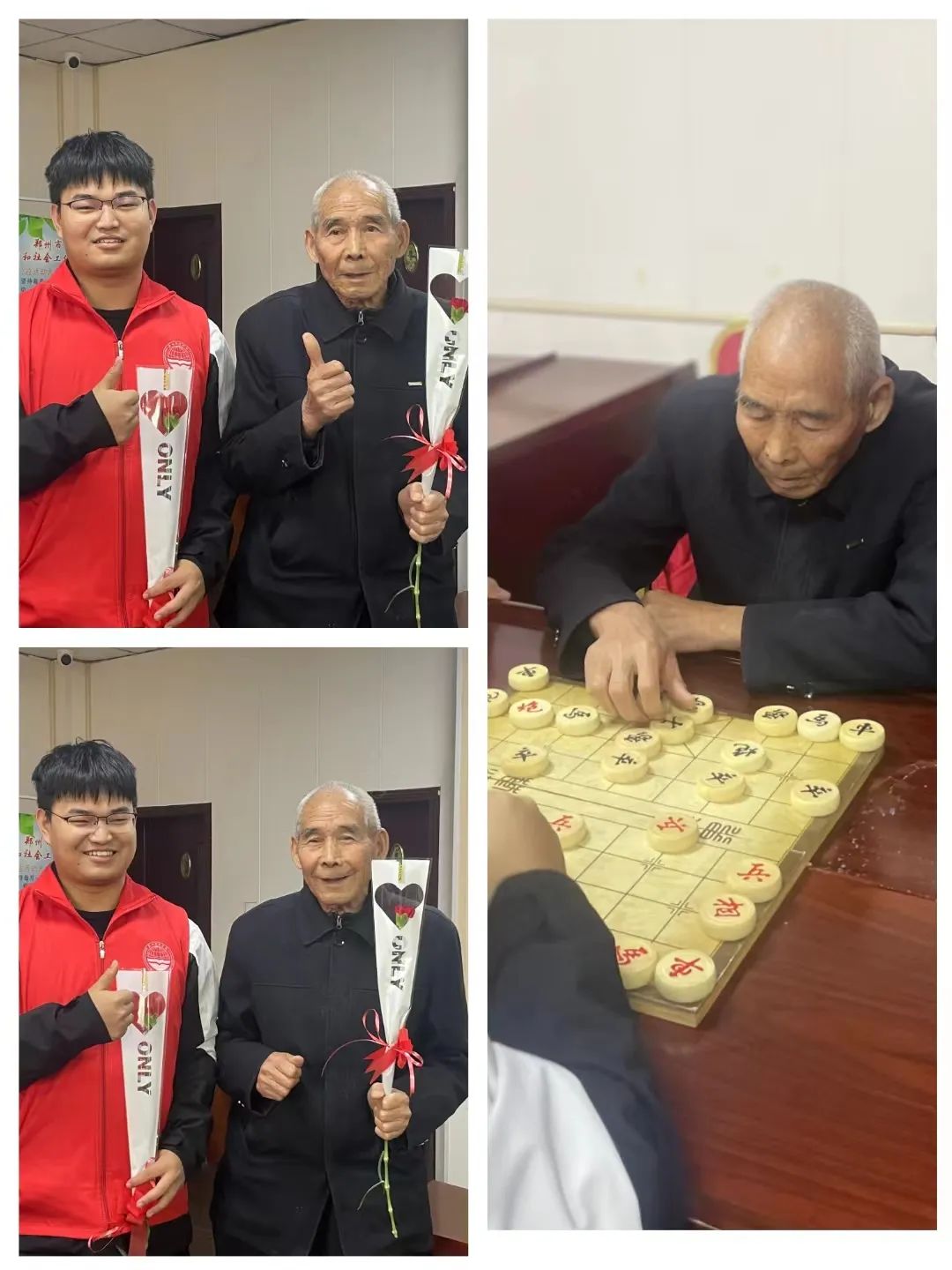 一些志愿者与颐和长者坐下来下起了象棋。他们一边指导长者们下棋的技巧,一边与长者们进行友好的对弈。大家笑语盈盈中度过了一段美好的时光。