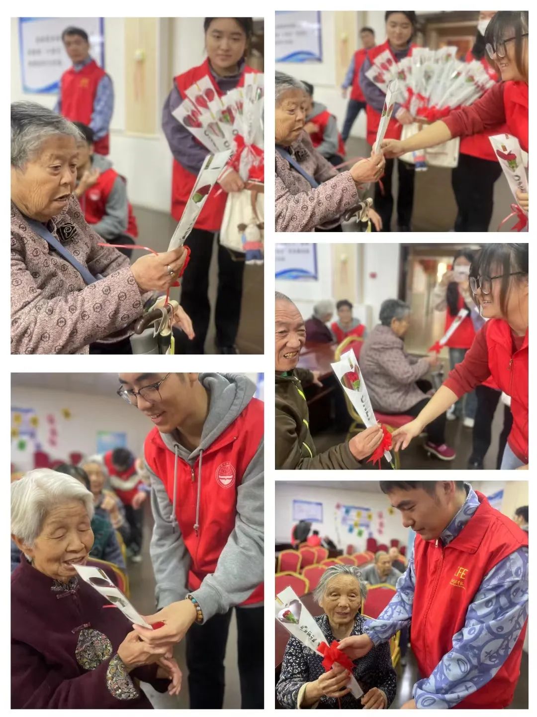 在活动的高潮时刻,志愿者们送上了精心包装的康乃馨花束,向长者们表达祝福和感激之情。长者们感动不已,纷纷接过花束,并对志愿者们表示衷心的谢意。