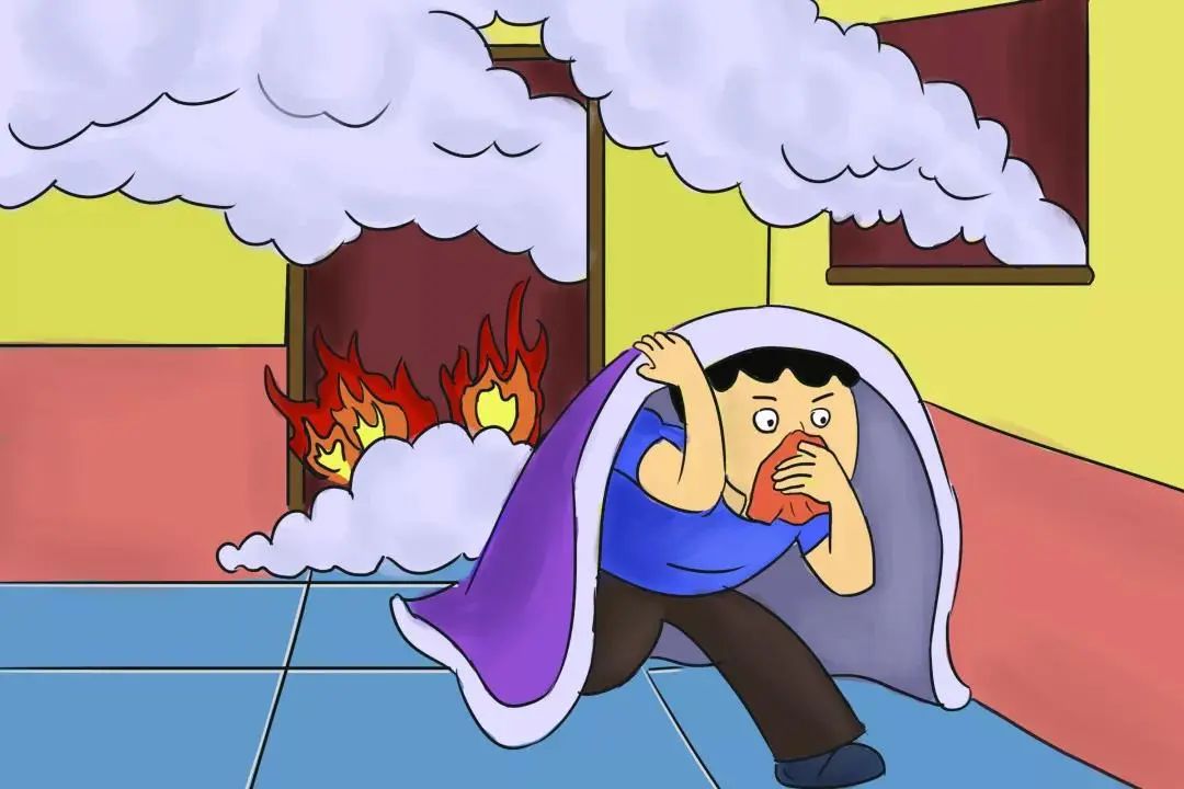 将浸湿的棉大衣、棉被、门帘子、毛毯、麻袋等遮盖在身上,确定逃生路线后,以最快的速度直接冲出火场,到达安全地点。