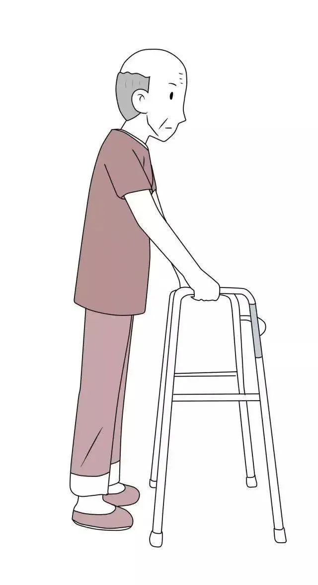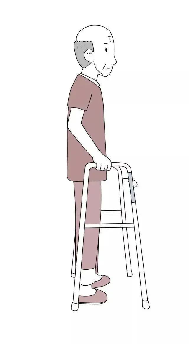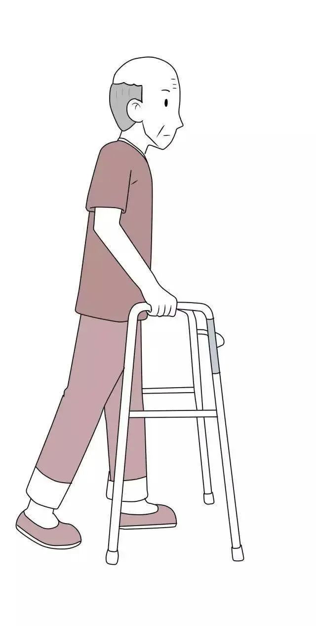 2)先将助行架向前移动一步,再向前迈步,迈步过程中保持助行架不动,依次向前移动。