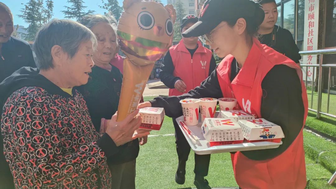 华莱士河南区域公司特别为这次慰问活动提供了汉堡和牛奶,并派员到颐和老人院为老人们送上这份美味的午餐。老人们感受到了来自社会各界的关心和爱护。