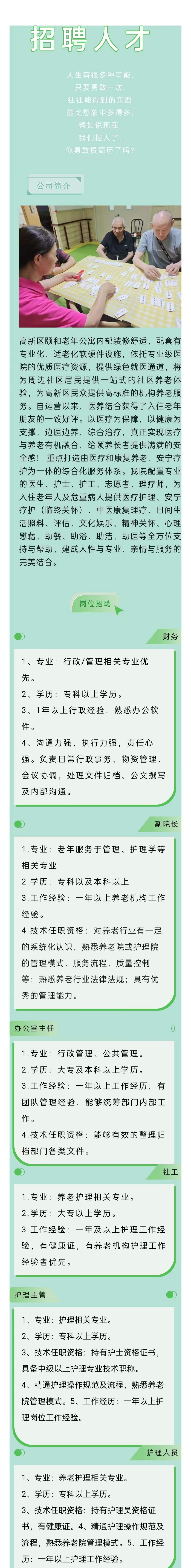 【颐和医养】来看!高新区颐和老年公寓多岗招聘啦!
