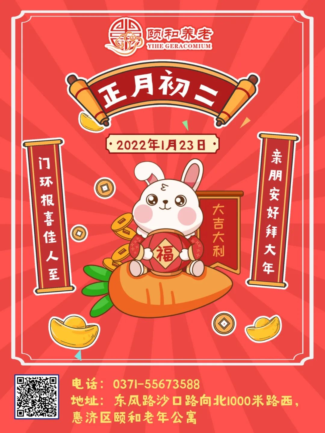 下一条: 惠济区颐和老年公寓给您拜年了!祝您及家人兔年大吉,新春快乐!
