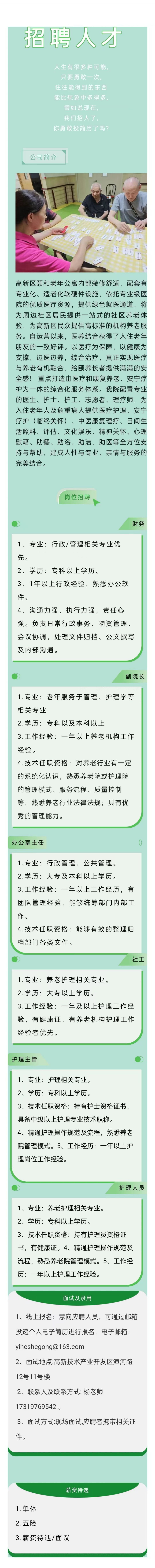 【颐和医养】来看!高新区颐和老年公寓多岗招聘啦!