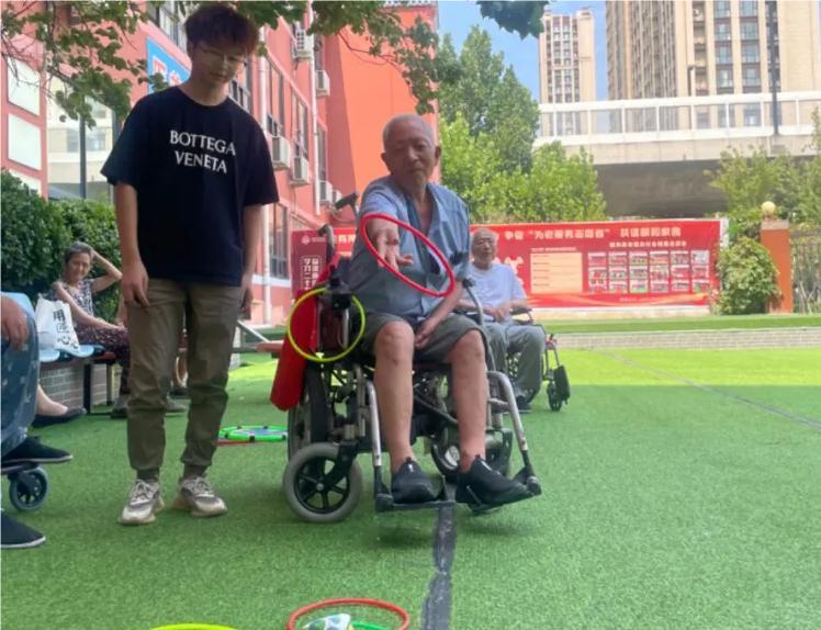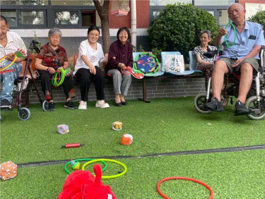 美美地睡过午觉后,下午的生活也是丰富多彩的,微风吹拂在脸颊,笑容映照在脸上,颐和社工们带领颐和长者欢快游戏