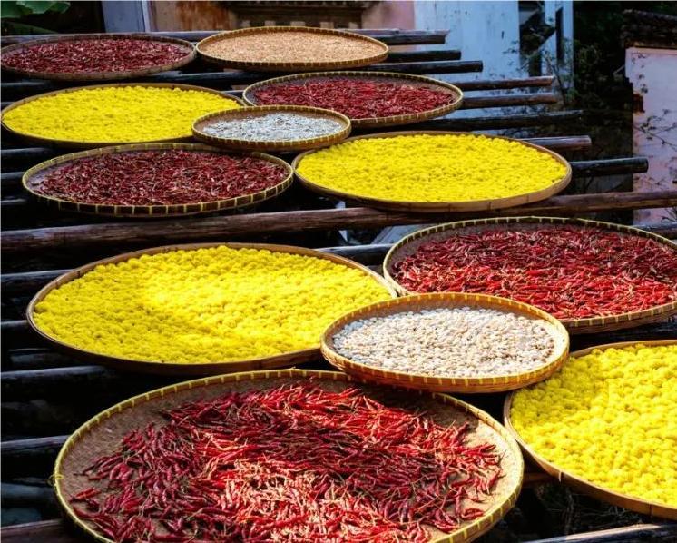 每年立秋,随着果蔬的成熟,便迎来了晒秋最旺季节。晒秋具有极强的地域特色,在江西、湖南、安徽等省的山区,由于地势复杂,村庄平地少,村民们只好利用房前屋后及自家窗台、屋顶架晒或挂晒农作物,久而久之就演变成一种传统的农俗现象。