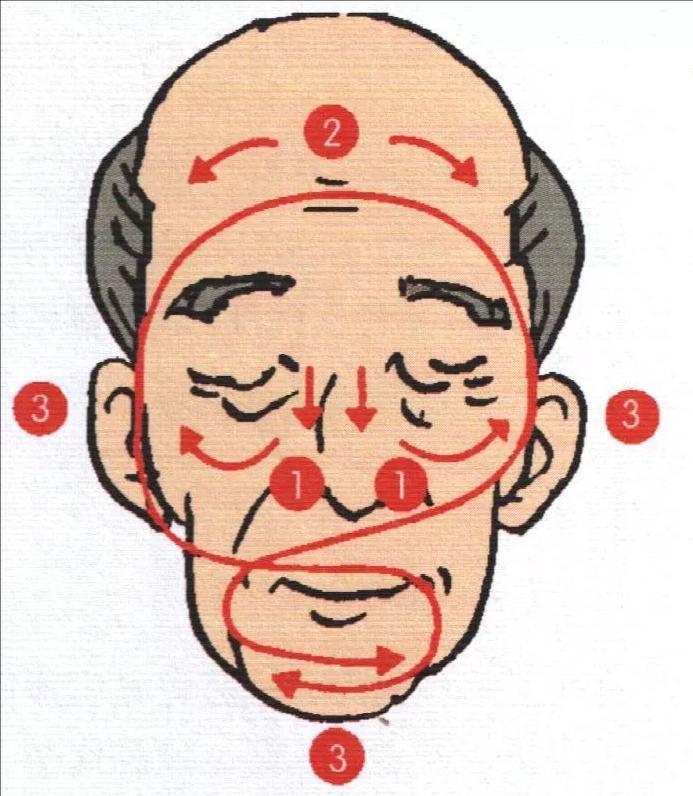 从内到外,从内眼角到外眼角。从额头到面颊,再到下巴,像描S形擦拭。