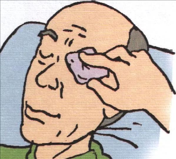 残存的牙齿用海绵牙刷清洁,不要忘记牙龈、舌头、口腔黏膜的清洁。