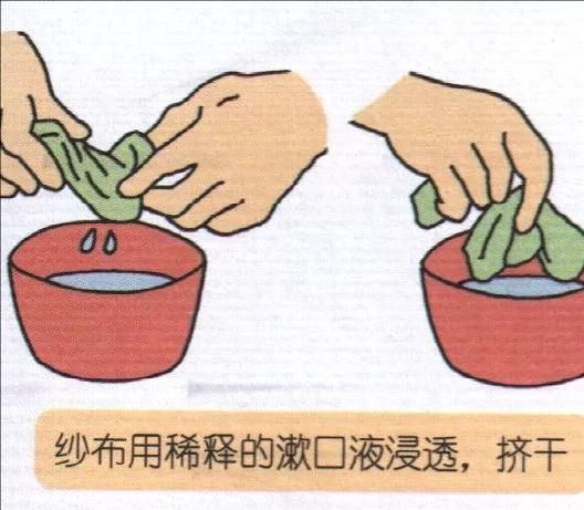 刷牙后漱口。老人不能漱口时,照护者用前述的湿纱布擦拭口腔。也可以用一杯水加小半勺盐和小苏打的液体漱口或擦拭。