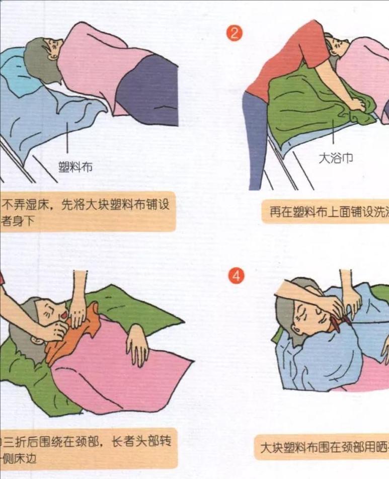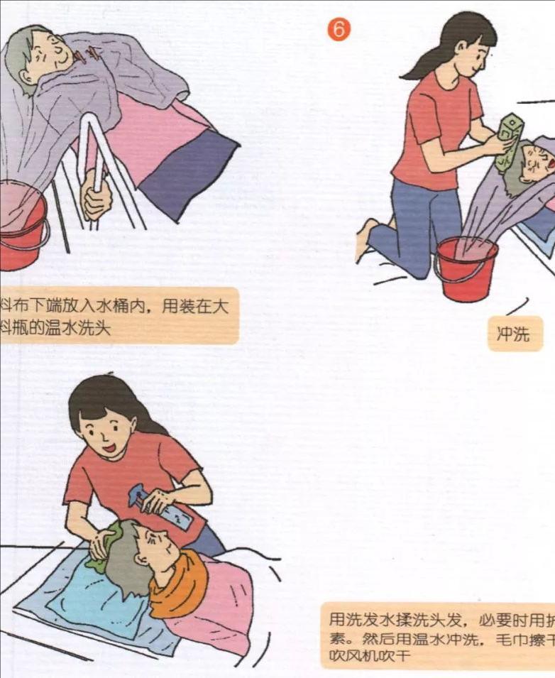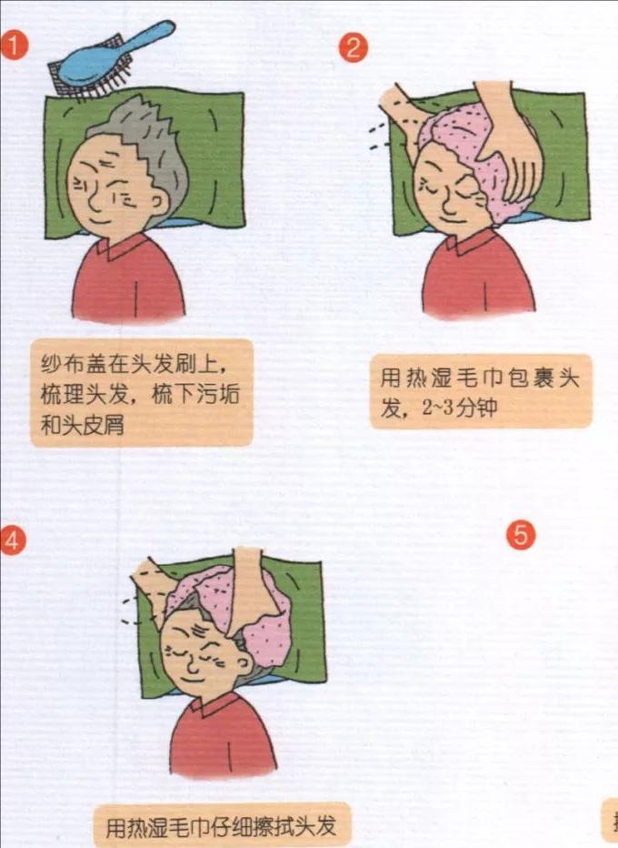 老人卧床,无法去浴室或坐起洗头时,应当定期在床上洗头。