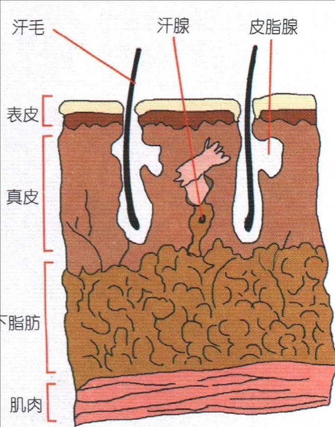 此外,皮肤还有汗腺和皮脂腺。汗腺分泌汗液,皮脂腺则分泌保持皮肤滑润的皮脂。 |