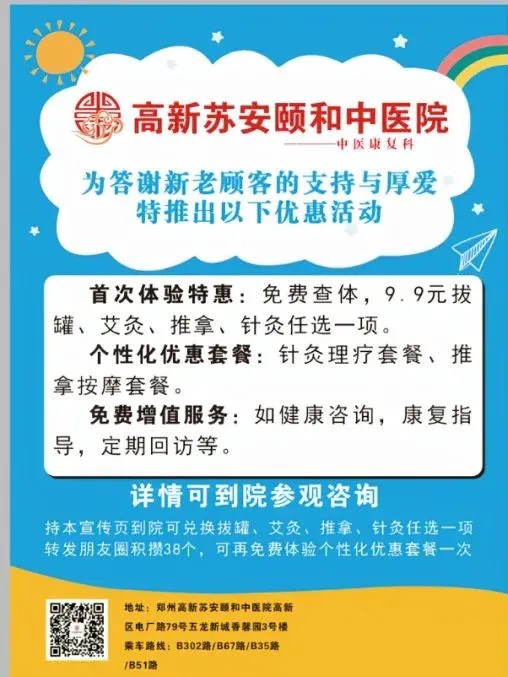 首次体验特惠:免费查体,9.9元拔罐、艾灸、针灸、推拿任选一项。
