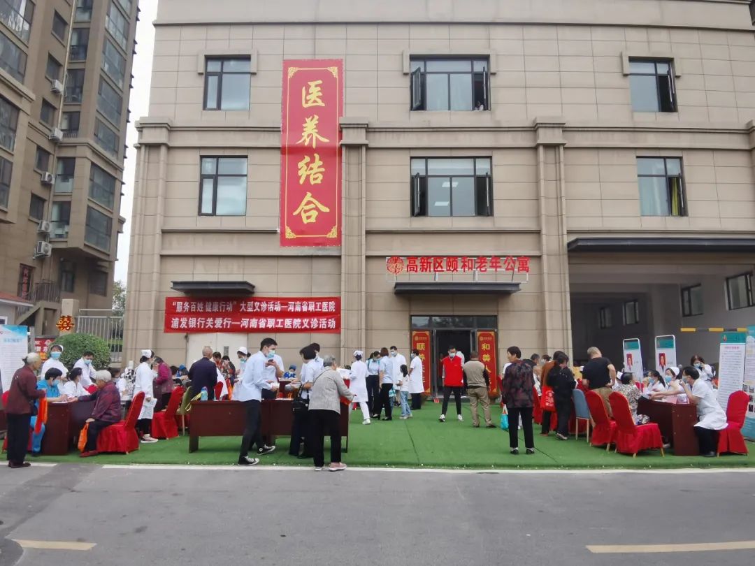 值得一提的是:河南省职工医院和高新区颐和公寓深度合作,于高新区五龙新城香馨园社区3号楼三层成立医养中心,一楼就医,二楼养老,真正实现医养结合,一站式服务。为入住长者,周边居民长期提供医疗帮助。全方位、全周期呵护老人健康,为老人增强获得感•幸福感•安全感,实现“康护一人、解放一家、幸福一生”的目标。